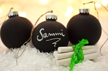You Need: Clear Ornament Balls, Chalkboard Paint, Paintbrush, Chalk